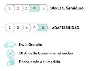 - CAPA 7 QUALITY FOAM ALTA DENSIDAD (29 cm): Núcleo de células abiertas que se caracteriza por su alta densidad, capacidad de recuperación e independencia de lechos con garantía de 10 años.