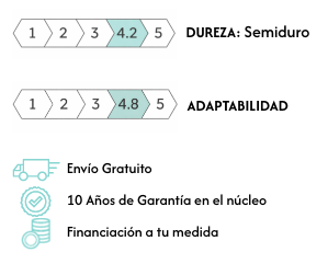 - CAPA 6 QUALITY FOAM ALTA DENSIDAD (29 cm): Núcleo de células abiertas que se caracteriza por su alta densidad, capacidad de recuperación e independencia de lechos con garantía de 10 años.